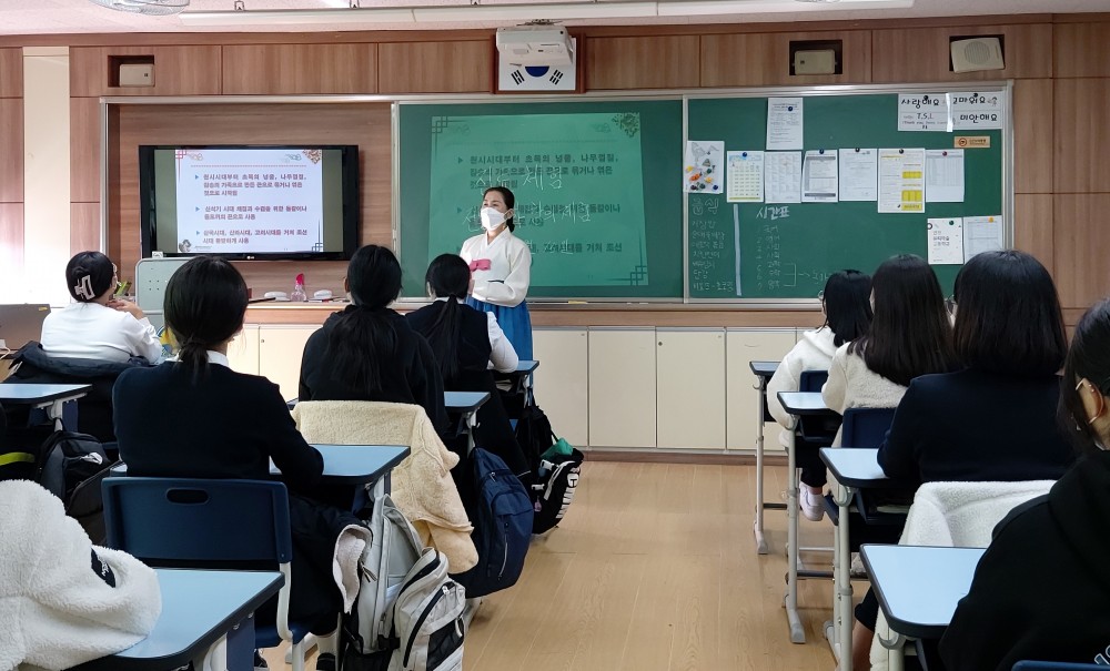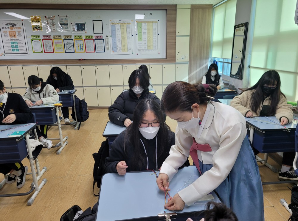 2021년 11월 15일 신현여자중학교에서 활동한 [진로직업피크닉 - 장명루만들기] 교육 사진입니다. (3학년)