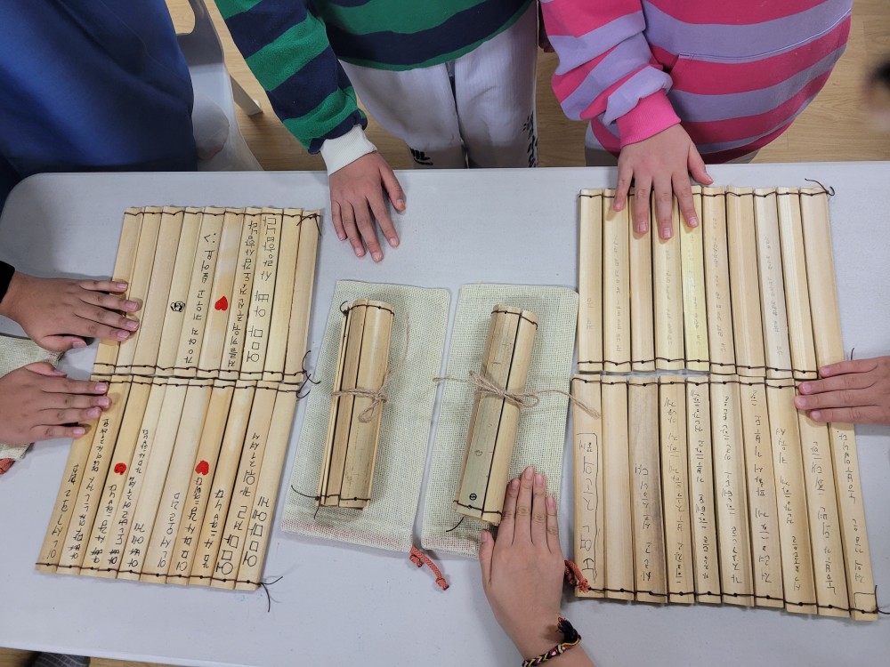 2021년 10월 20일 제2기 서구마을학교 죽간 만들기 교육 사진입니다.
