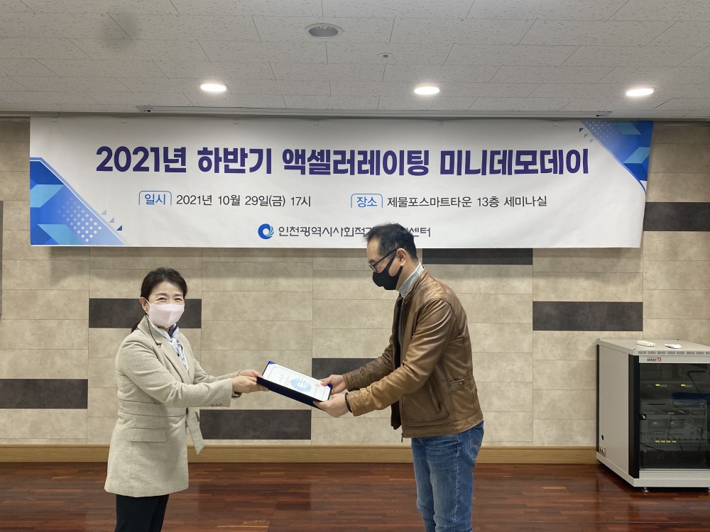 2021년 10월 29일 제물포스마트타운에서 김명애선생님의 하반기 액셀러레이팅 과정 수료식 활동입니다.