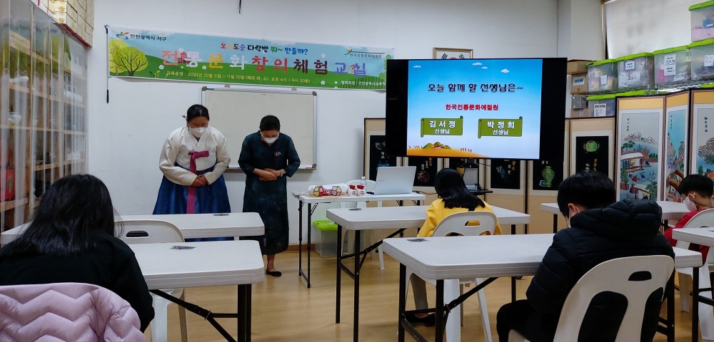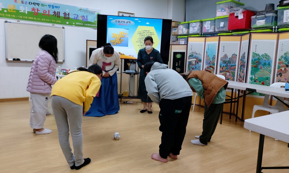 2021년 11월 3일 제2기 서구마을학교 (10차시) 주령구 만들기 교육 사진입니다.