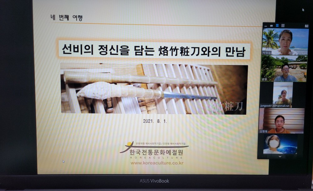 2021년 8월 1일 [명상다례 문화유산영상여행] 중 네번째 여행 - 선비의 정신을 담는 낙죽장도와의 만남 활동 사진입니다.
