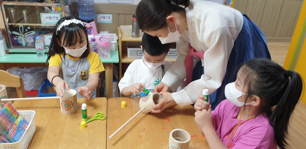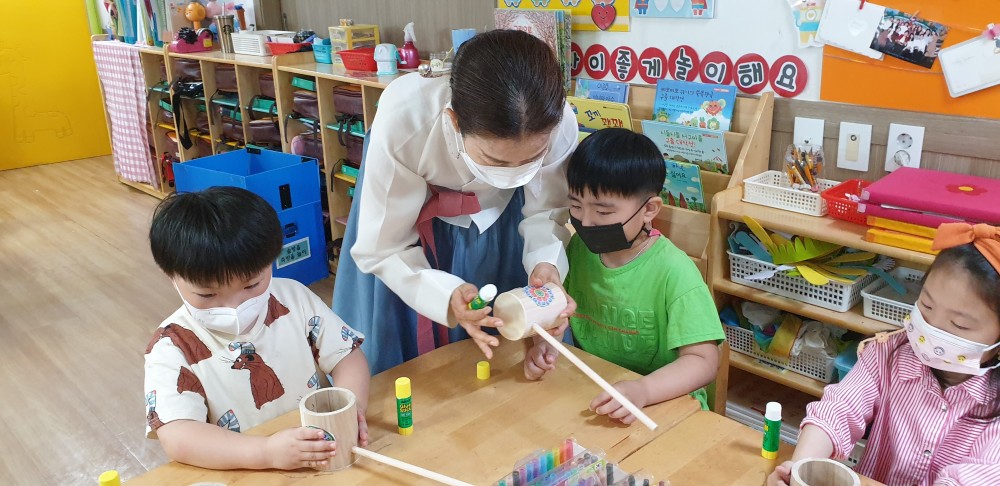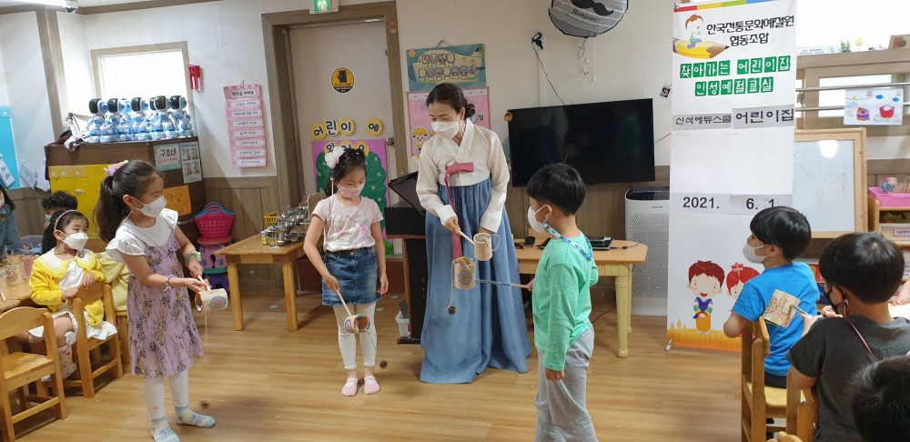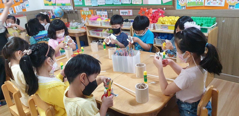 2021년 6월 1일 신석에듀스쿨어린이집에서 활동한 죽방울놀이 만들기 생태창의체험 사진입니다.
