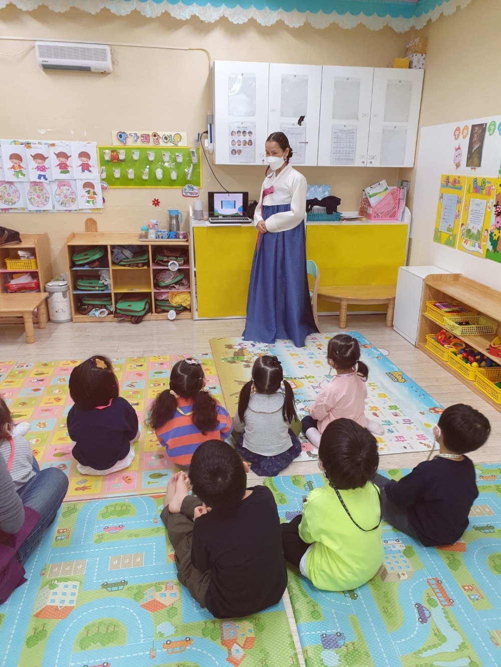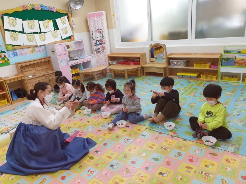 2021년 4월 20일 동아어린이집에서 활동한 밥상머리예절 교육 사진입니다.