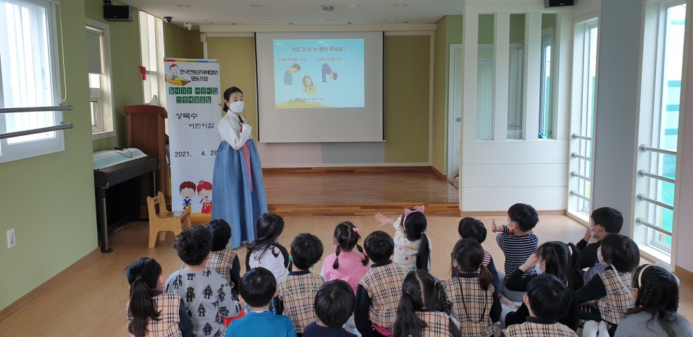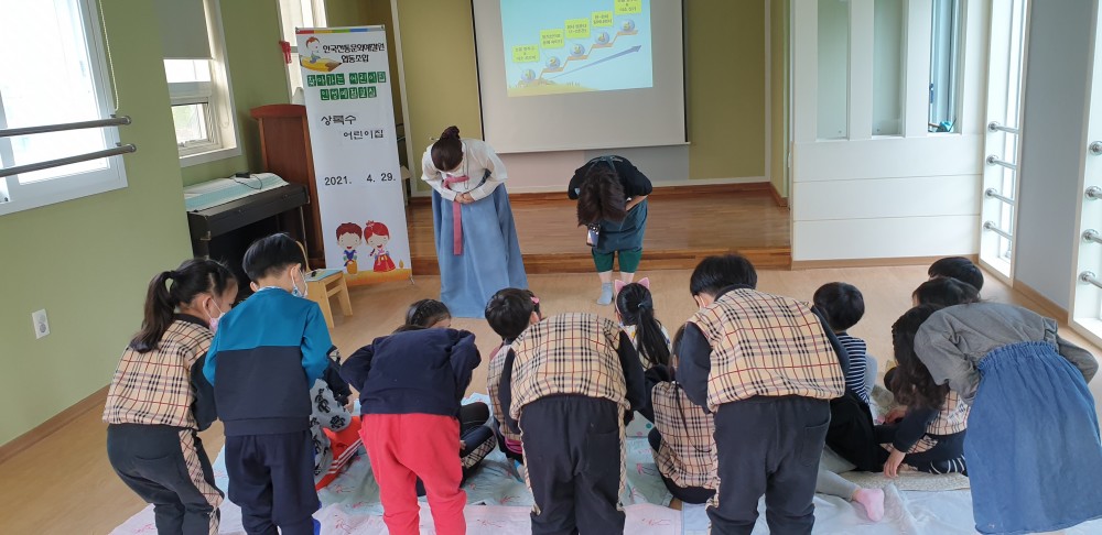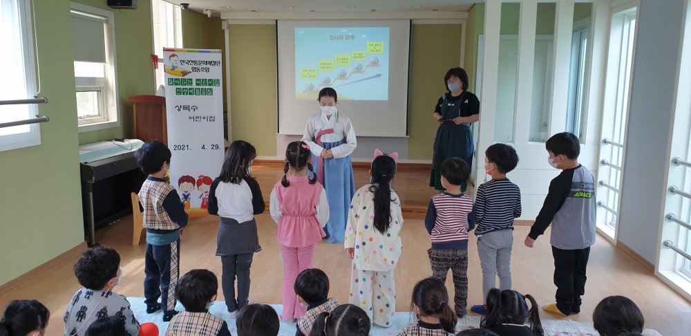 2021년 4월 29일 상록수어린이집에서 활동한 [마음을 담은 인사예절] 교육 사진입니다.