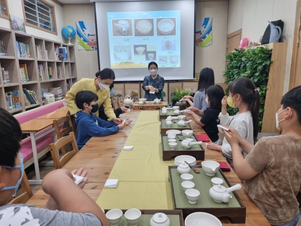 2022년 5월 17일 서로사랑하는지역아동센터에서 이루어진 서구마을학교 다함께 차차차 (茶茶茶) [차의 종류와 역사 알아보기] 교육 사진입니다. |