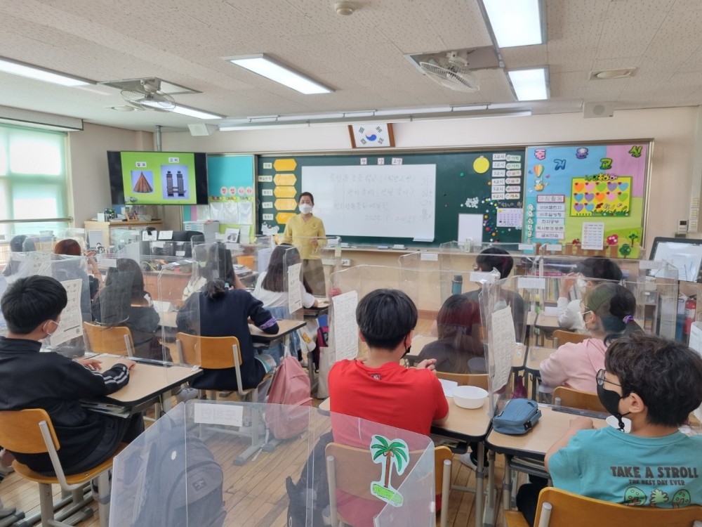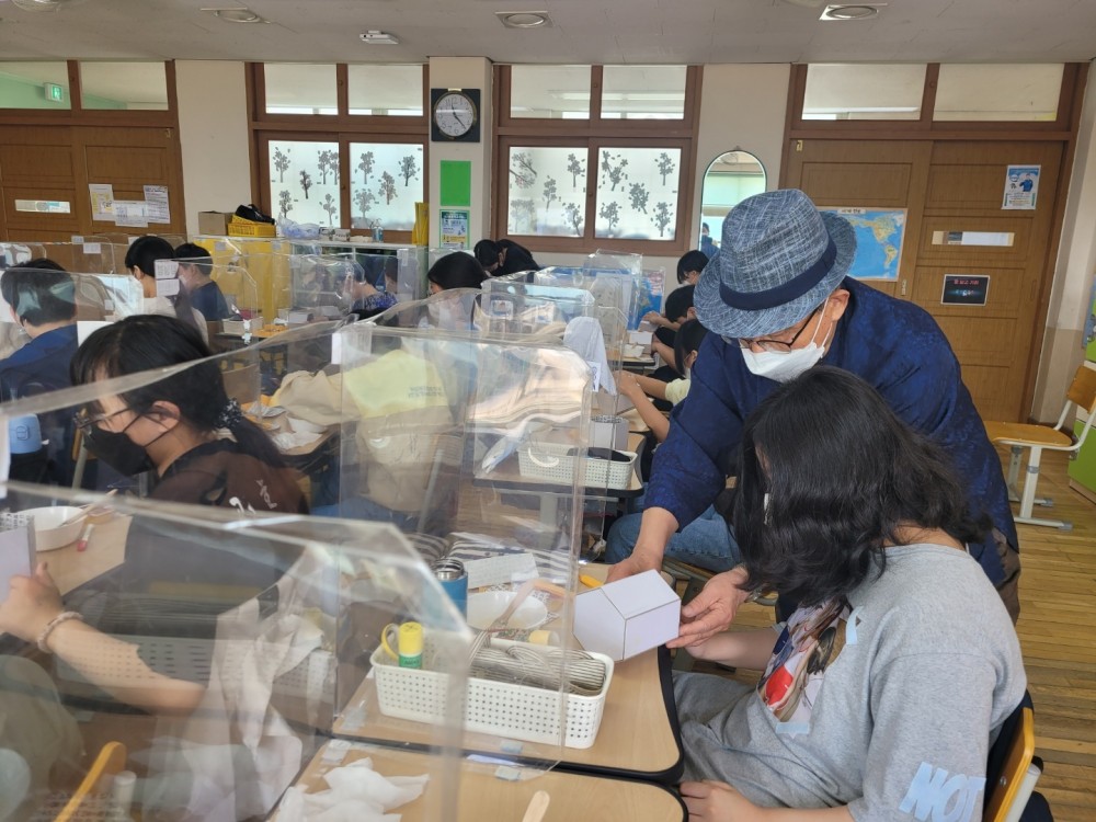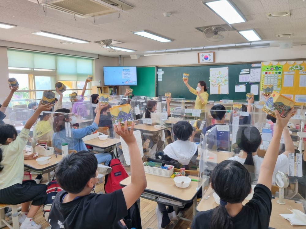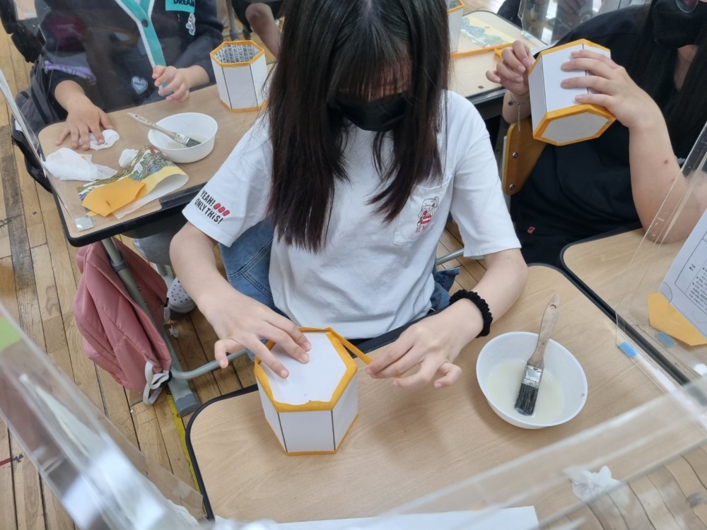 2022년 5월 20일 효성동초등학교 6학년을 대상으로 교육한 일월오봉도 한지공예 수업 사진입니다.