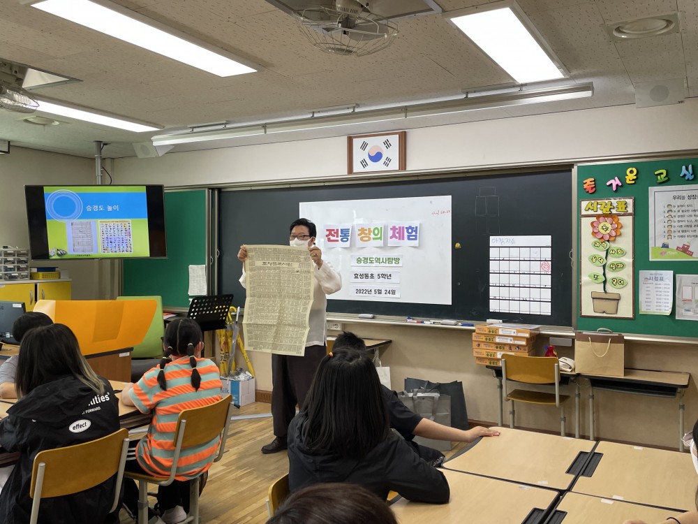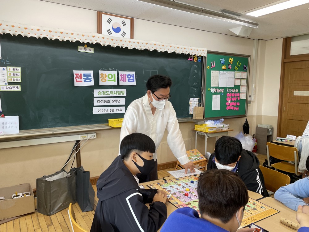 2022년 5월 24일 효성동초등학교 5학년을 대상으로 교육한 승경도 역사탐방 수업 사진입니다.