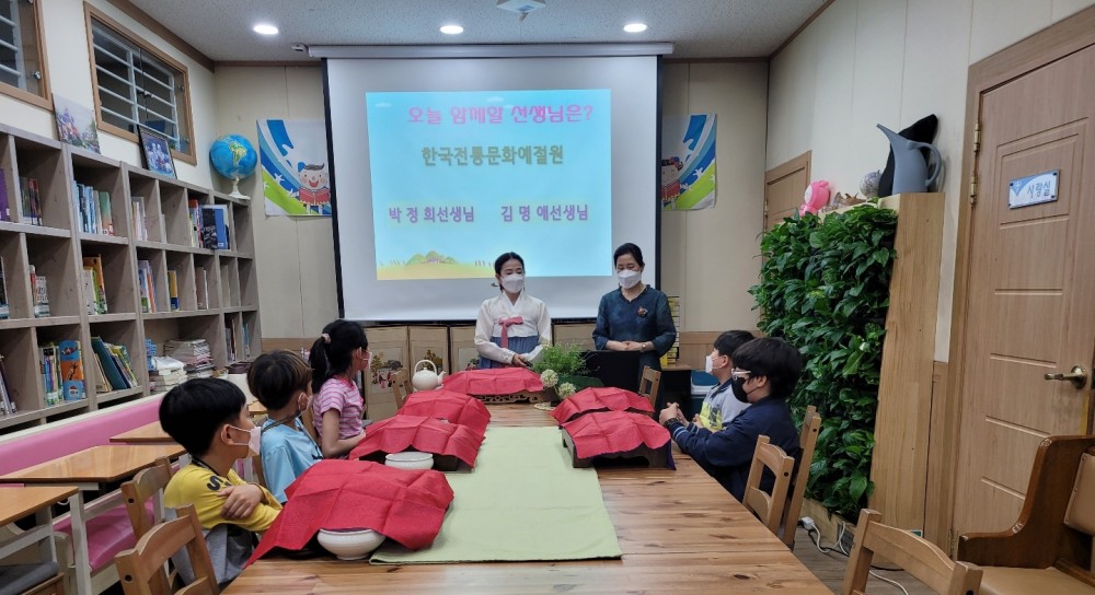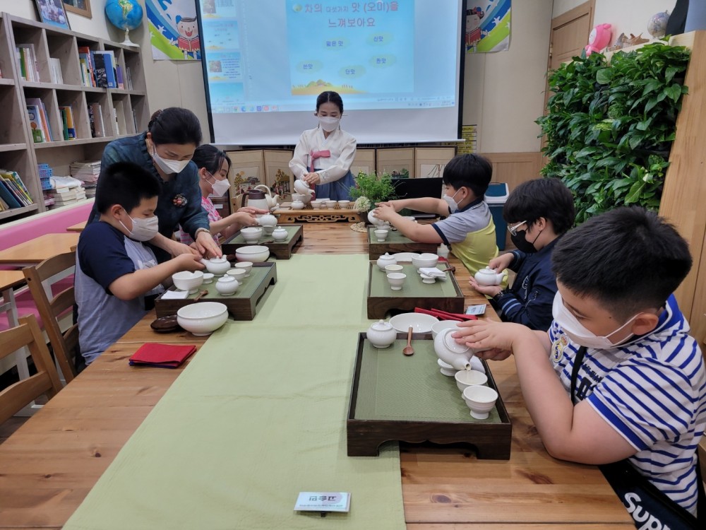 2022년 5월 24일 서로사랑하는지역아동센터에서 이루어진 서구마을학교 다함께 차차차 (茶茶茶) [맑고 향기로운 차 이야기와 오감 느끼기] 교육 사진입니다. |