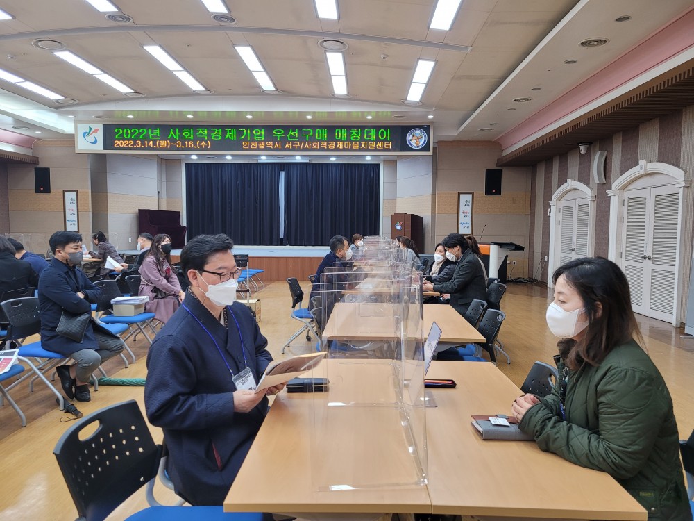 2022년 3월 14일~16일 서구청에서 이루어진 [사회적경제조직 우선구매의 날] 매칭데이 활동 사진입니다.