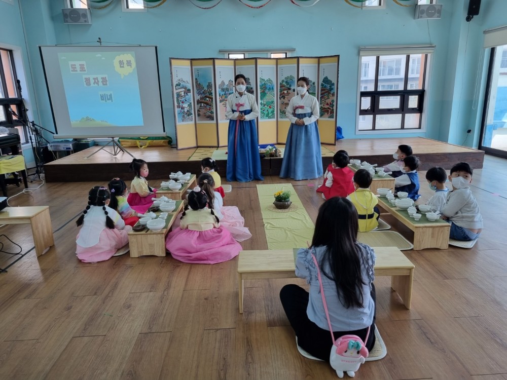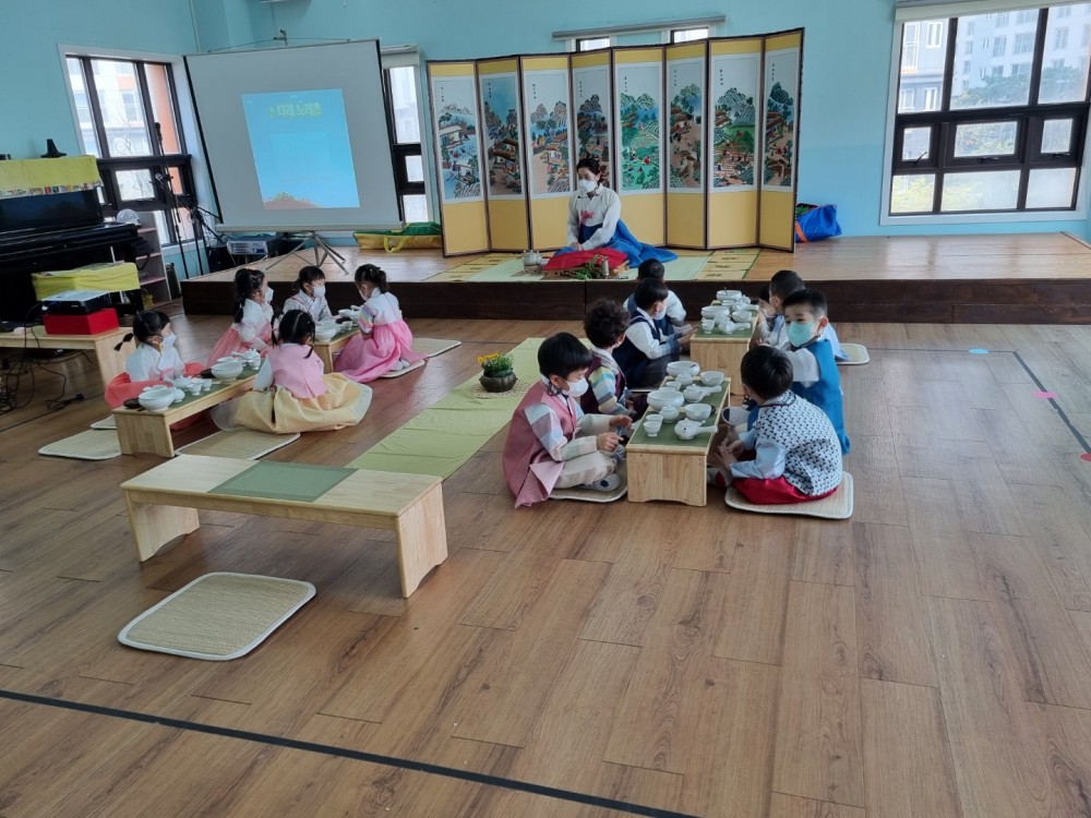 2022년 4월 19일 예지유치원에서 활동한 유아다례 교육 사진입니다.