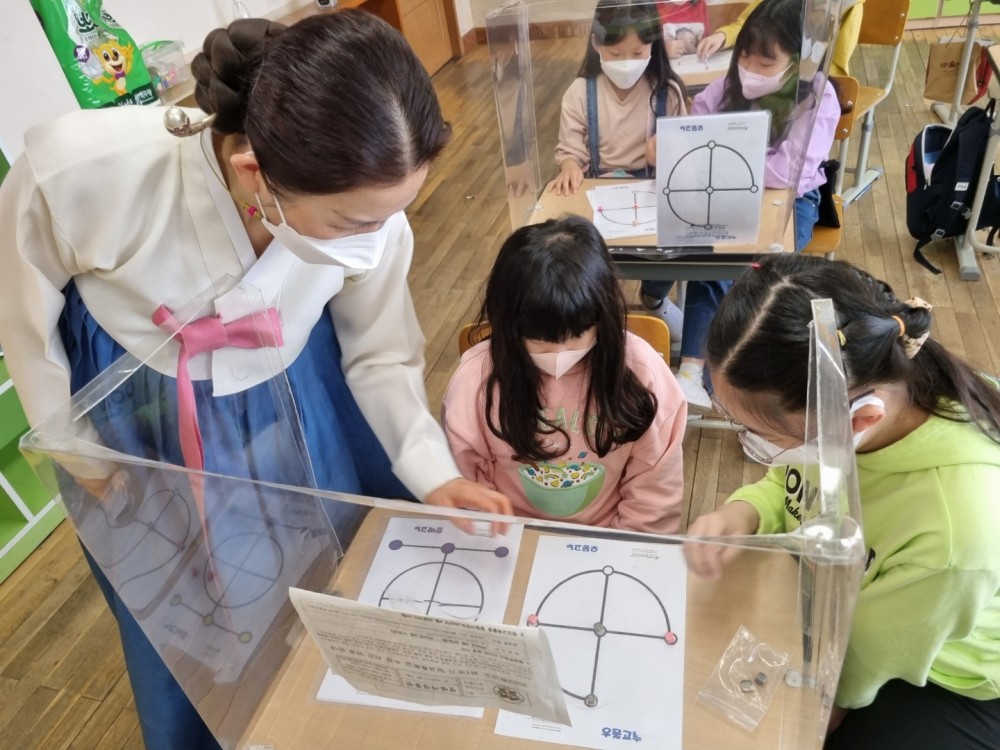 2022년 4월 26일 효성동초등학교 3학년, 5학년을 대상으로 활동한 [논리, 수학의 기초 고누놀이] 교육 사진입니다.