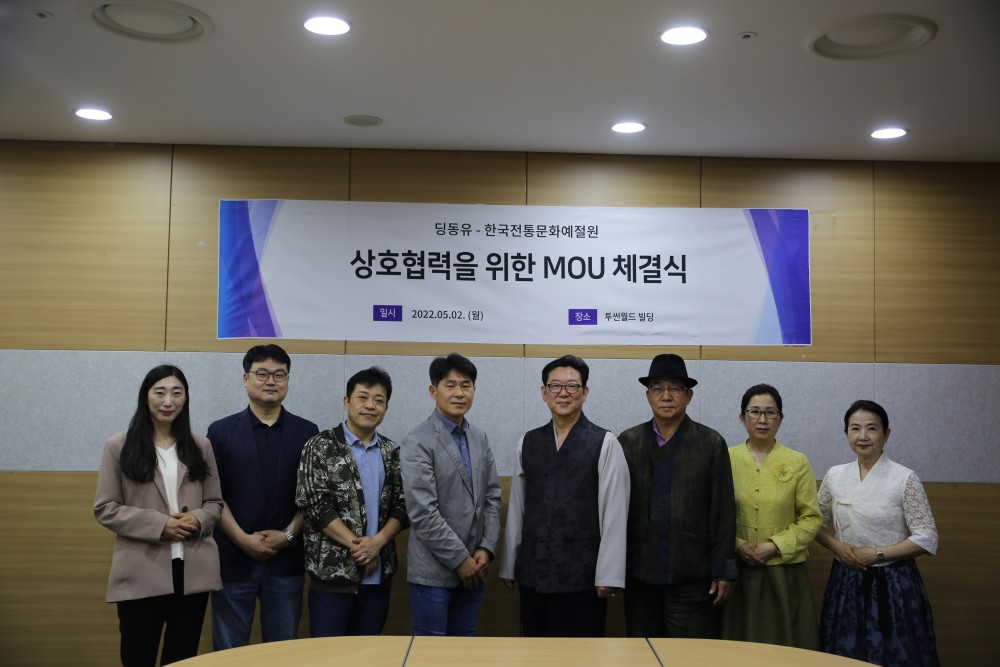 2022년 5월 2일 투썬월드에서 활동한 딩동유&한국전통문화예절원 MOU 체결식 사진입니다.