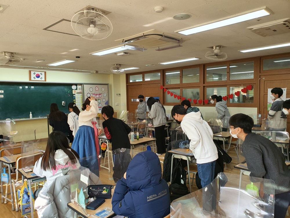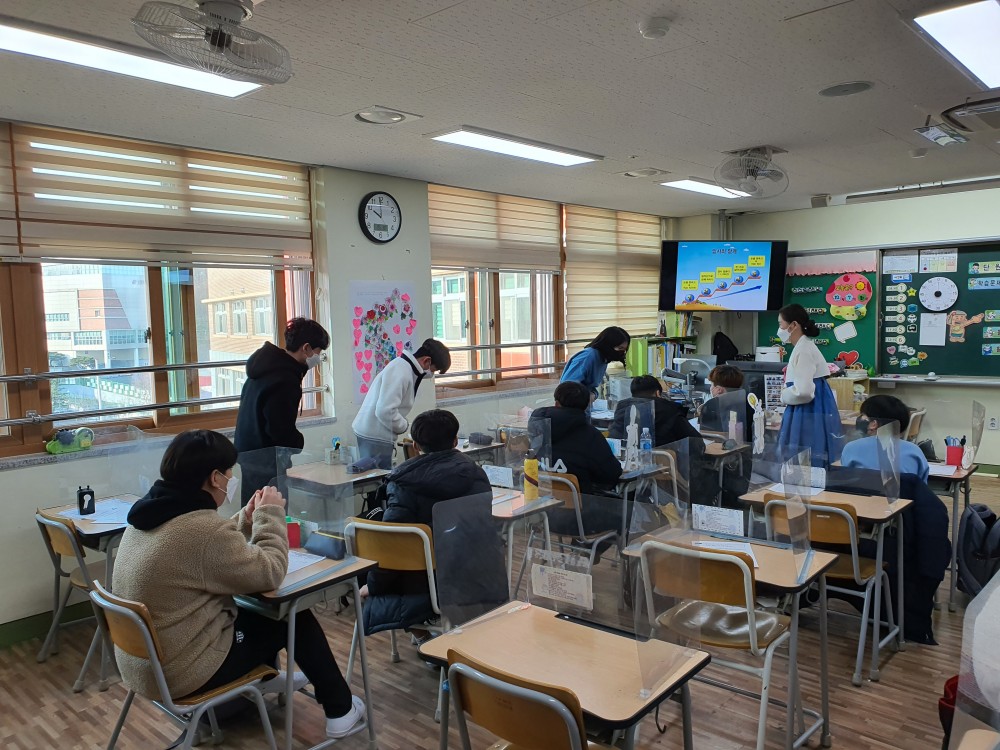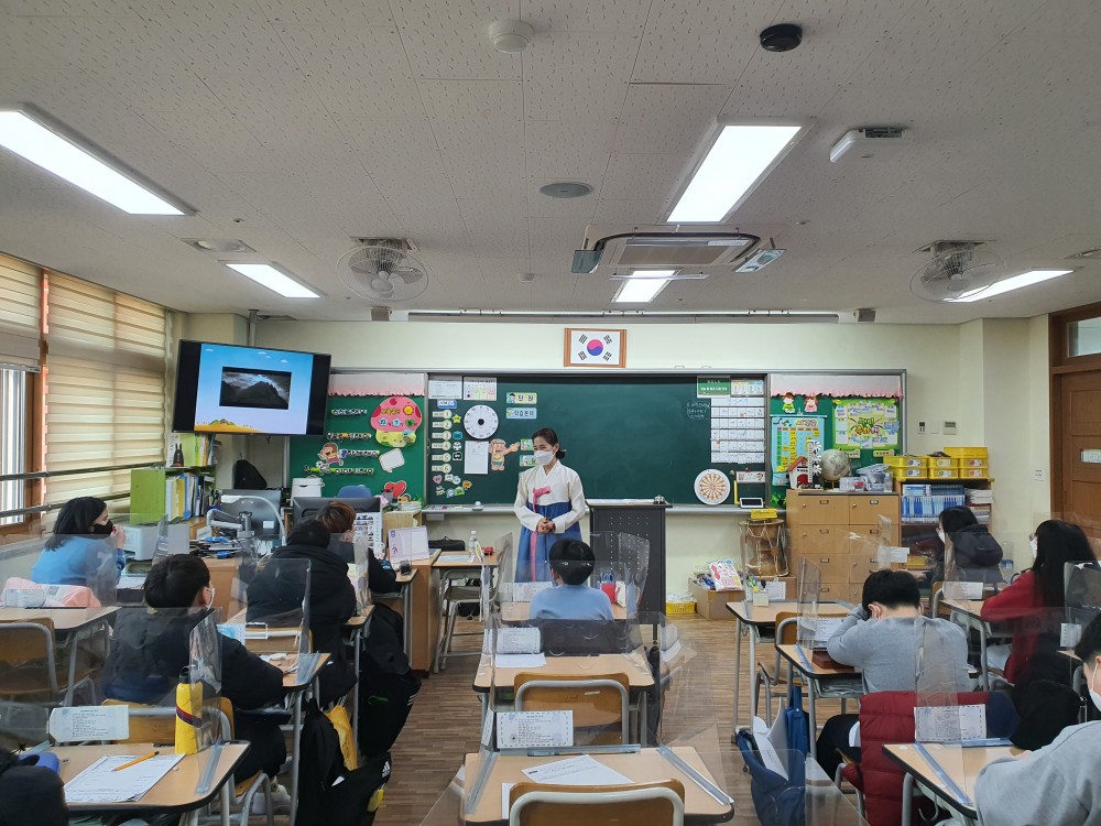 2021년 12월 7일 백석초등학교에서 활동한 인사예절 교육 사진입니다.