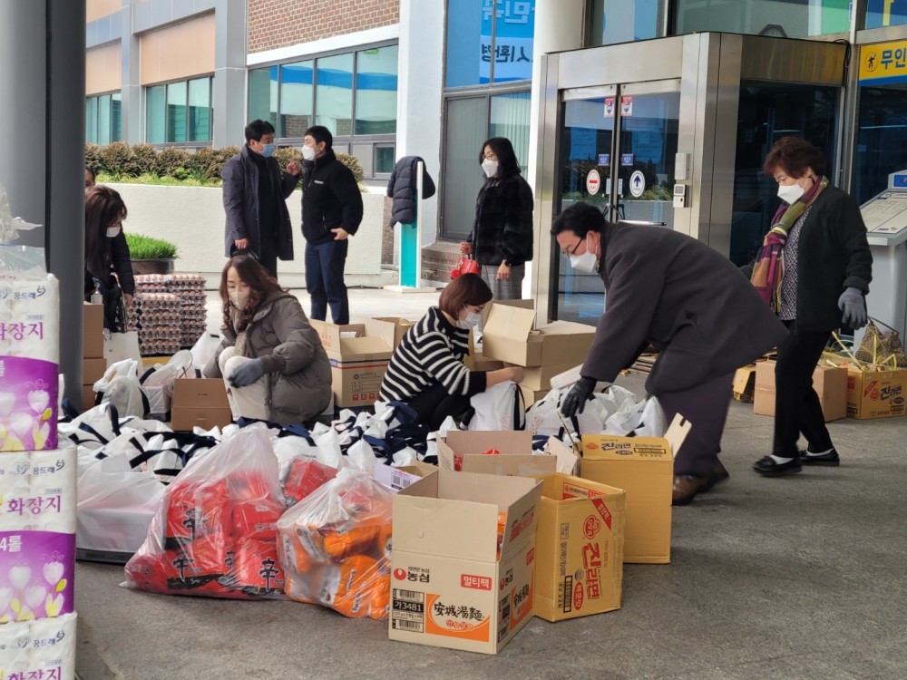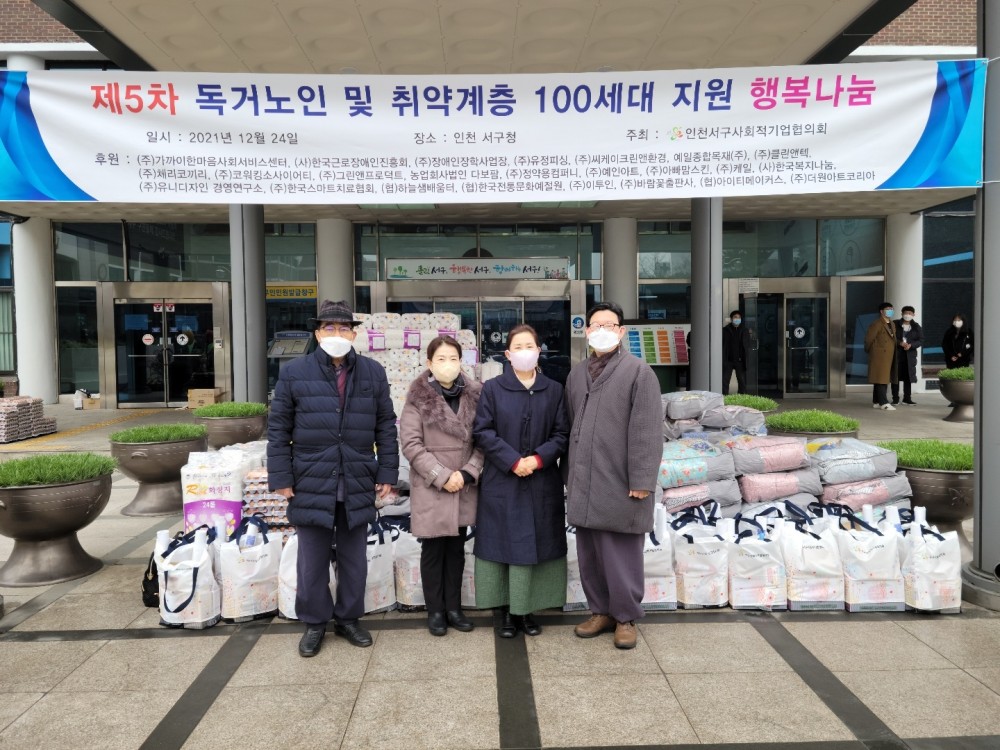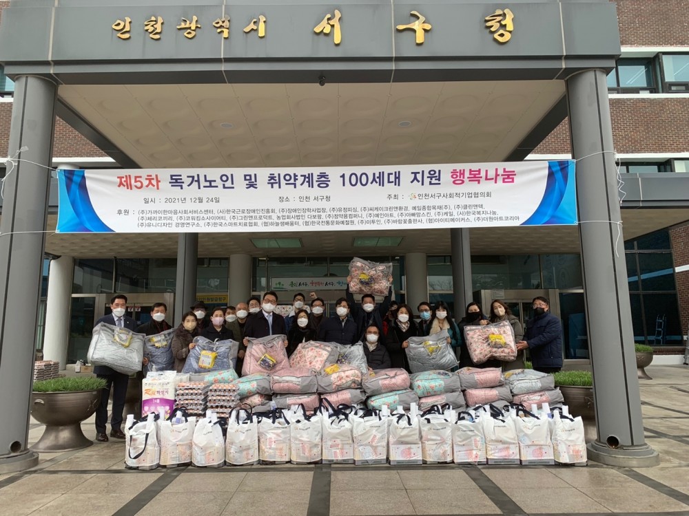 2021년 12월 24일 인천서구사회적기업협의회가 주최한 제5차 독거노인 및 취약계층 지원 행복나눔 행사 사진입니다.